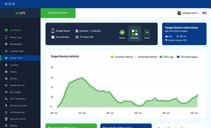 ダッシュボードには、対象の電話で 1 日を通して行われたすべてのアクティビティの包括的な概要が表示されます。通話、テキスト、最後に確認された場所に関する詳細が一目でわかります。