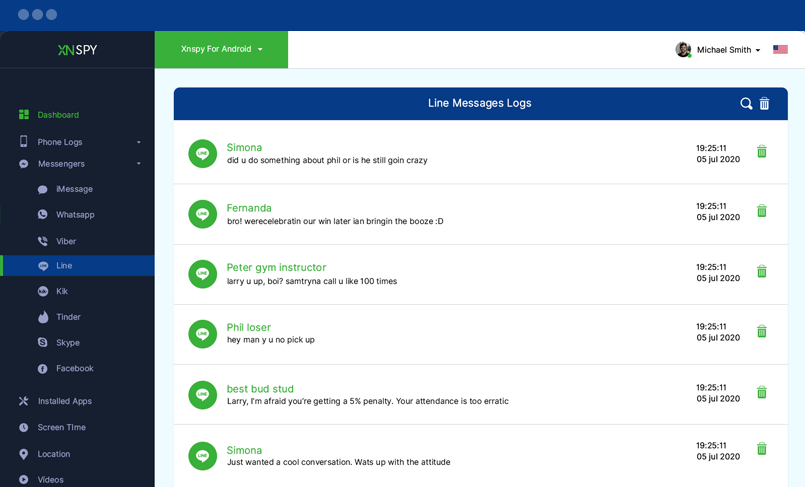 このメッセンジャーアプリを介して、すべての着信および発信通話、ビデオ通話、およびメッセージを監視します。 Line Messengerで使用されているウォッチリストの単語に対して、通話ログを表示したり、アラートを受信したりできます。