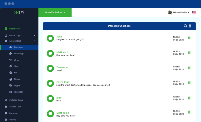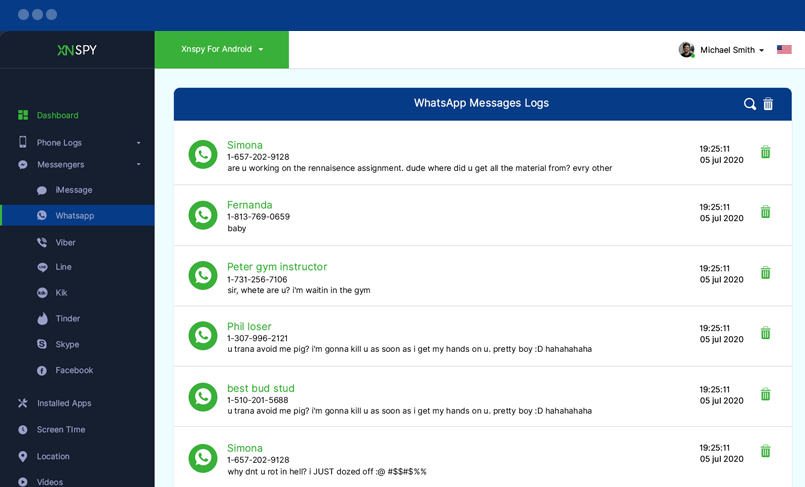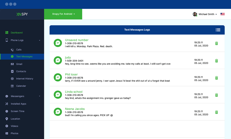 ターゲット デバイスで送受信されるすべてのメッセージを次に示します。テキストメッセージを読むことができ、送信者の名前と番号、および時刻と日付のスタンプを表示できます。