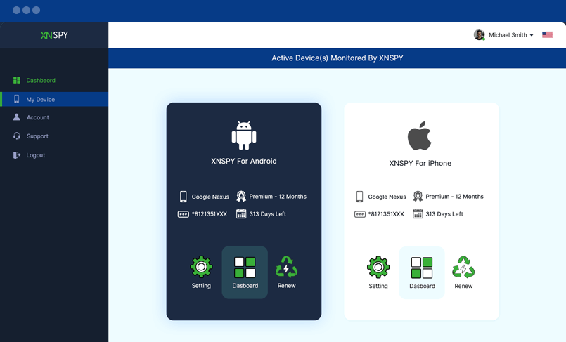 ここでは、XNSPY モバイルおよびタブレット監視ソフトウェアがインストールされているすべてのアクティブなデバイスを確認できます。サブスクリプション関連の詳細はすべてここで確認できます。