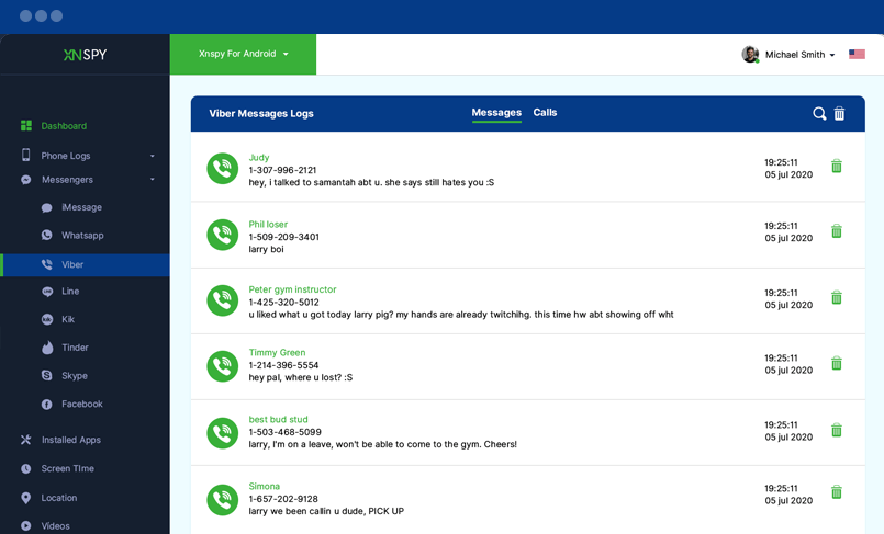 ここで Viber ログを確認できます。 [通話とメッセージ] タブをクリックして、Viber の通話ログとチャット ログをそれぞれ監視します。各通話とメッセージの時刻と日付のスタンプを監視することもできます。