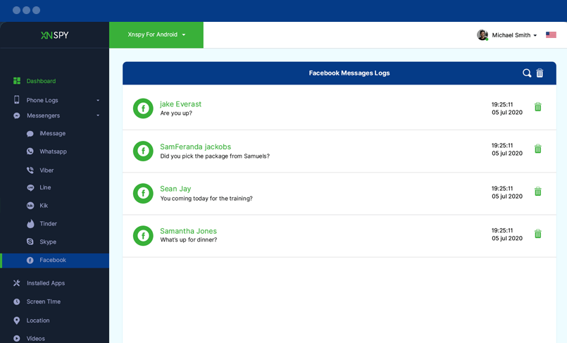 Facebook Messenger アプリ経由で送信されるすべての送受信メッセージを監視できます。
