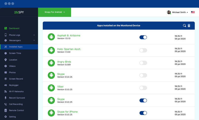 ターゲットの電話またはタブレットにインストールされているすべてのアプリケーションのリストは次のとおりです。各アプリのインストール日時とともに、アプリケーション名とそのバージョンを表示できます。