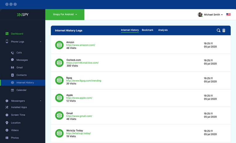 これは、ターゲットのスマートフォンまたはタブレットの所有者がアクセスしたすべての Web サイトのリストです。 Web サイト、その URL、および Web サイトが訪問された回数を監視できます。アクセスした各 Web サイトの時刻と日付のスタンプを監視することもできます。